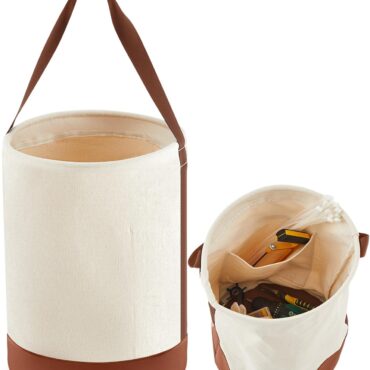 Canvas Bucket Tool Bag 17″ x 12″ Made of No. 4 Canvas with Leather Bottom Tool Bag Bucket with 1 Pocket Load Capacity up to 121 lb for Iron Workers Welding