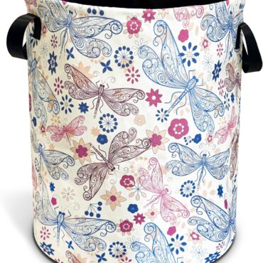 Dragonfly Laundry Basket Flowers Foldable Oxford Cloth Funny Tote Bag Laundry Hamper Clothes Storage Bucket Toy Organizer For Bathroom/Laundry Storage/Bedroom 18.9×16.5 Inch