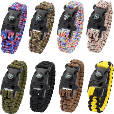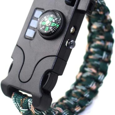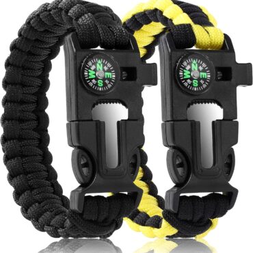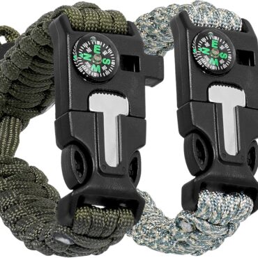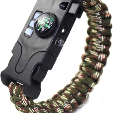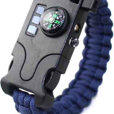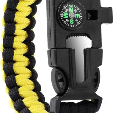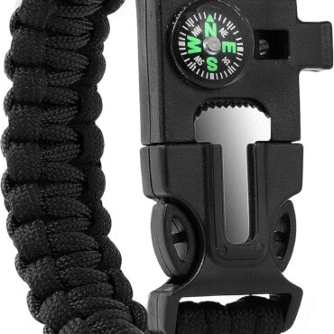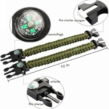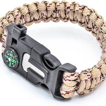Survival Bracelet and Multitool – Mini Compass, Emergency Whistle, Cord Sheer, and Flint – Tactical, Outdoors, Emergency, & Camping