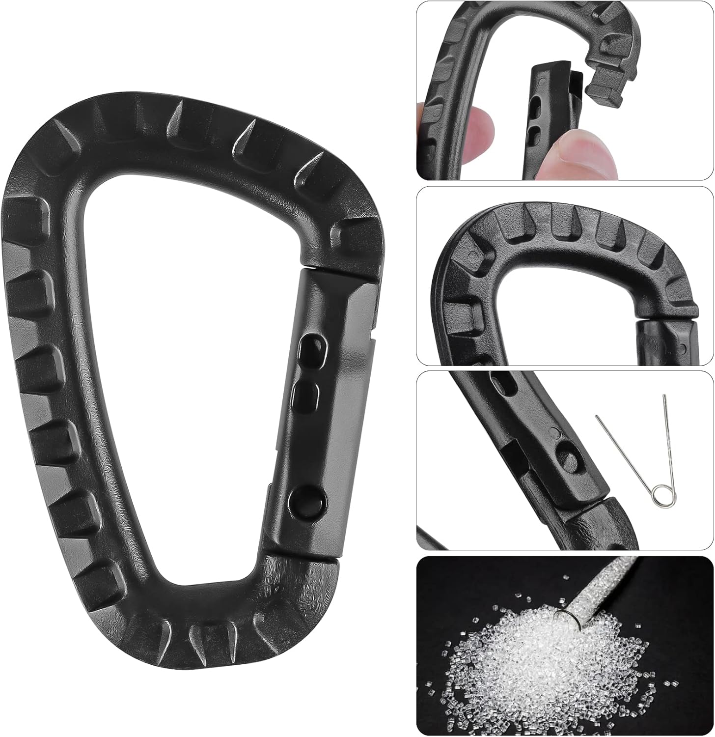 - Quality:The carabiner are made of high quality hard plastic. Light weight,strong load, wear resistant, excellent tensile strength,quick locking design. Tactical Carabiner Keychain
