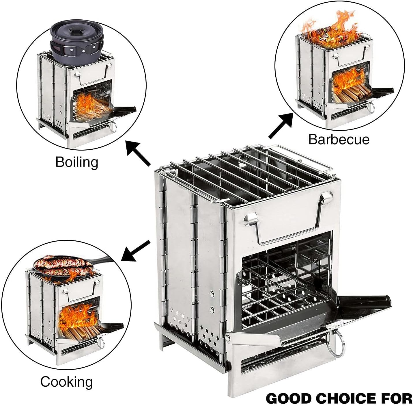 - Foldable & Portable: Folding camping wood burning stove made of stainless-steel materials, easy to carry, easy to clean.Assembles in seconds, no tools required. This camp stove can fit into your gear bag, the back of your car, and many other places!