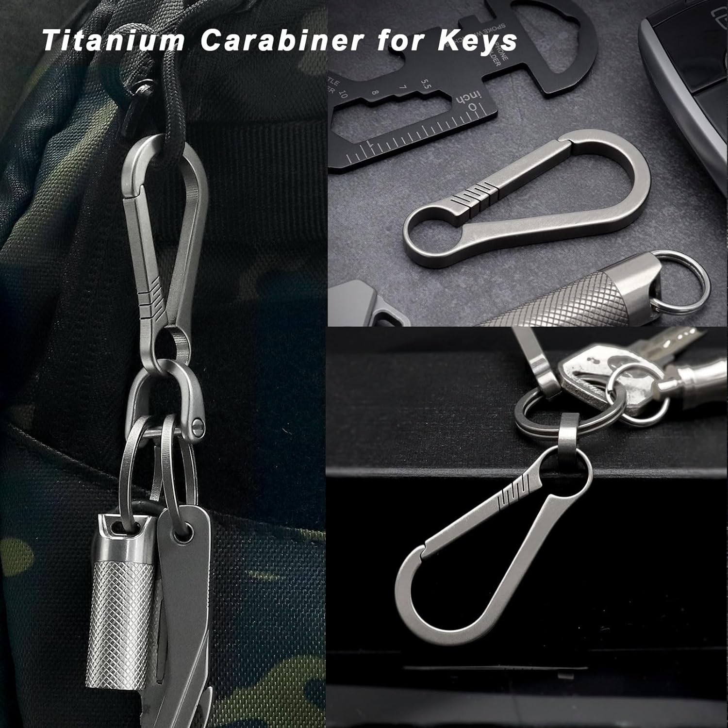 - Premium Titanium Key Carabiner: Made of high quality TC4 titanium alloy which is non corrosion, anti-rust and super strong.