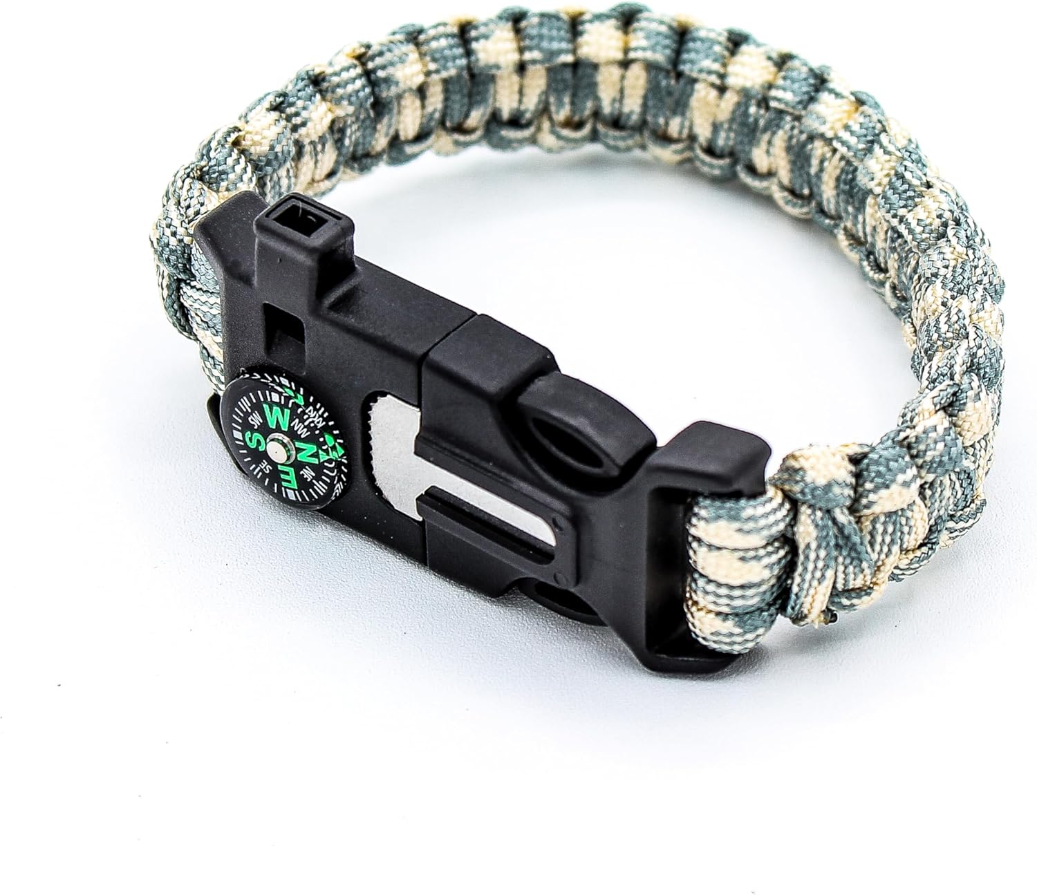 Survival Bracelet and Multitool – Mini Compass, Emergency Whistle, Cord Sheer, and Flint – Tactical, Outdoors, Emergency, & Camping
