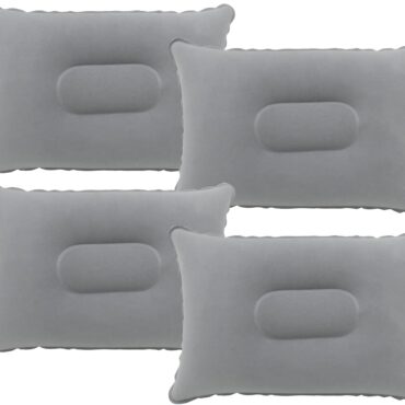 4 Pack Gray Ultralight Inflatable Pillow Small Squared Flocked Fabric Air Pillow for Beach Hiking,Camping,Traveling,Napping,Desk Rest,Neck &Lumbar Support