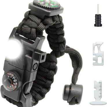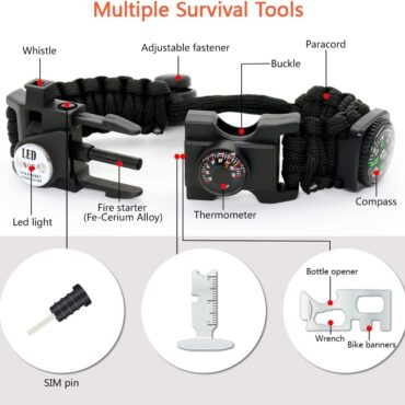 20 in 1 Survival Paracord Bracelet Adjustable Gear Kit with SOS LED Light, Fire Starter, Bigger Compass, Survival Whistle, Perfect for Camping, Hiking, Fishing