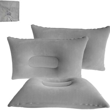3 Pack Ultralight Inflatable Pillow Small Squared Flocked Fabric Air Pillow for Hiking,Camping,Traveling,Napping,Desk Rest, Beach Pillow Neck Lumbar Support(Gray)